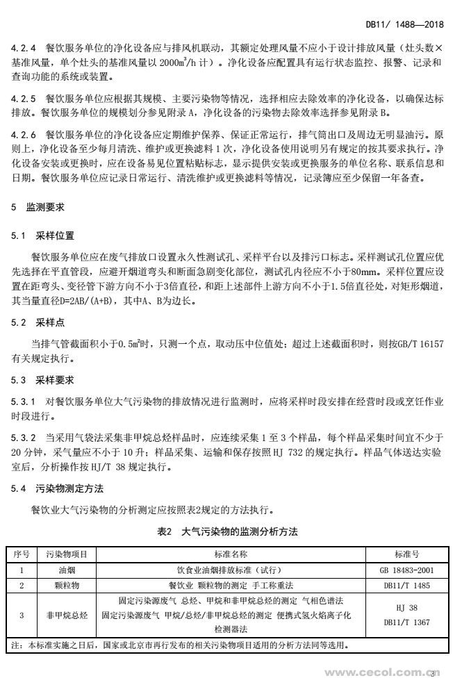 2018年北京市《餐飲業大氣污染物排放標準》(DB 11/1488-2018)